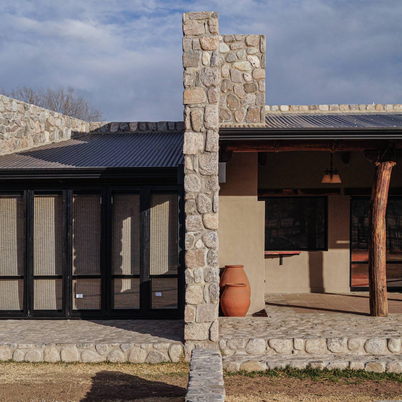 En esta vivienda desde un principio se vivió una experiencia de vida con sus propietarios. Se conjugó en ella el “espíritu” del valle, a través de sus rústicas pircas colocadas con maestría de artesano, de sus frágiles cañas que tamizan la luz, de sus fuertes y nobles maderas, sumado a esto, una orientación eficaz para un buen aprovechamiento del sol y de las vivencias paisajísticas plenas. Esta vivienda se proyectó y construyó en un ambiente de buena interacción y en su proceso disfrutamos todos. Es la casa de los “aciertos”.